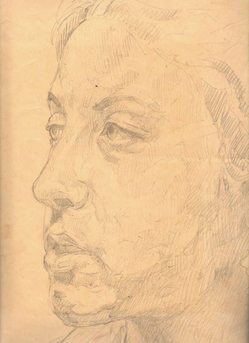 He was an art major and constantly drawing in pencil on large sheets of paper; he’d draw anybody or anything that would hold still. He did quick sketches on newsprint, finer detailed studies on manila paper, and photo-realistic portraits on Bristol. His natural gift was apparent immediately, and his drive to create was moving faster than art school could satisfy. He thought his art teachers were holding him back, and the quest for a degree in fine art was looking more and more meaningless. An alarm went off in his head one morning and he marched up to the admin offices and withdrew from the U.