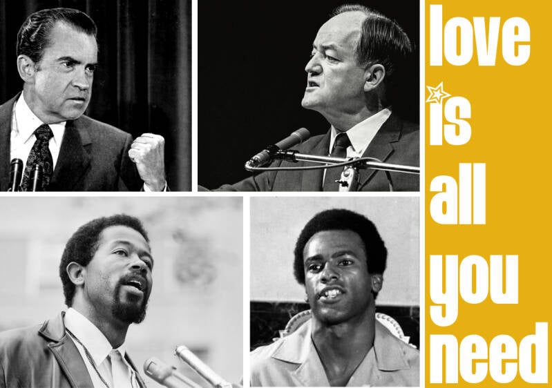 Humphrey lost to Richard Nixon, of course. Please don’t be mad, I hope it wasn’t our heckling that cost him the election.