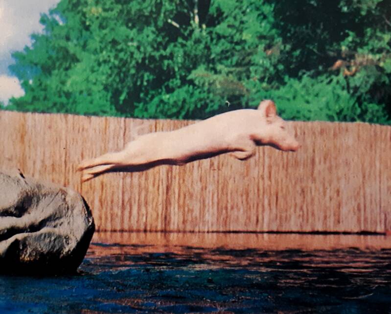 I never really wanted to have a pet pig—for me it’s like buying a boat: it’s better to know someone else who owns one. It began many years ago, my admiration of pigs and my collection of pig photos, pig art, and pig toys. Yes, I knew it was odd. Anyway, the pig thing became part of my identity in such a way that the old quandary of friends and family, “what to get Robert for Christmas or his birthday?” was easily remedied, and my pig collection started to overtake our home décor and my wardrobe. My wife’s patience finally ran out. I watched Linda take down my pig wall hangings and framed prints. Goodbye old oven mitt. Adios coffee mugs. Many of the plush toys became dog chews. So sad. I don’t know what you make of all this, but I think of myself as a nutcake.