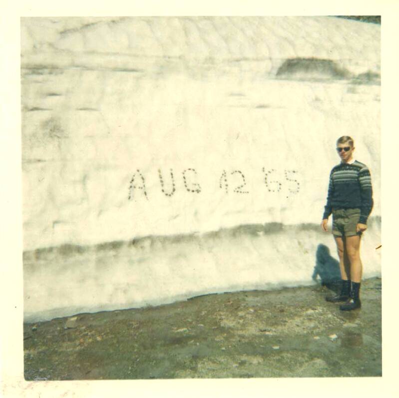 The mountain resented having a road cut into its side and seemed to be trying to nudge us off. I know this was cruel, but I piped up that I could see far below the wreckage of a car that had gone over the cliff. Nearing the crest, Mom clenched her teeth and moaned while Dad exalted “Isn’t that a beautiful view? Come on, Bobby, I’ll take a picture of you over by that snow bank. Imagine! Snow in August!”